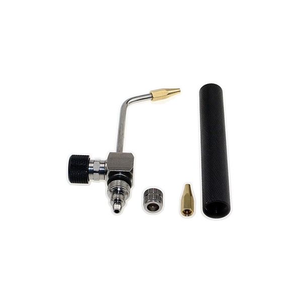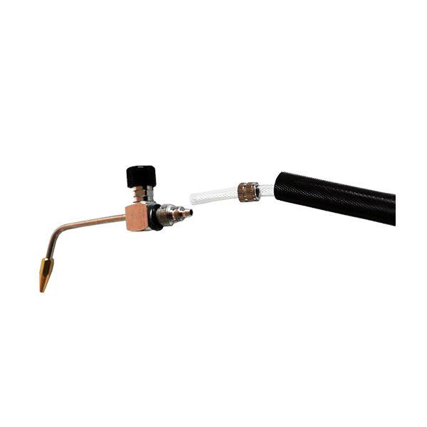 1. Válvula de ajuste; 2. Conector; 3. Boquilla de llama; 4. Boquilla de llama curva (opción); 5. Barra de arma de fuego; 6. Puerto de entrada de aire; 7. Boquilla de llama tipo PIN (opcional).